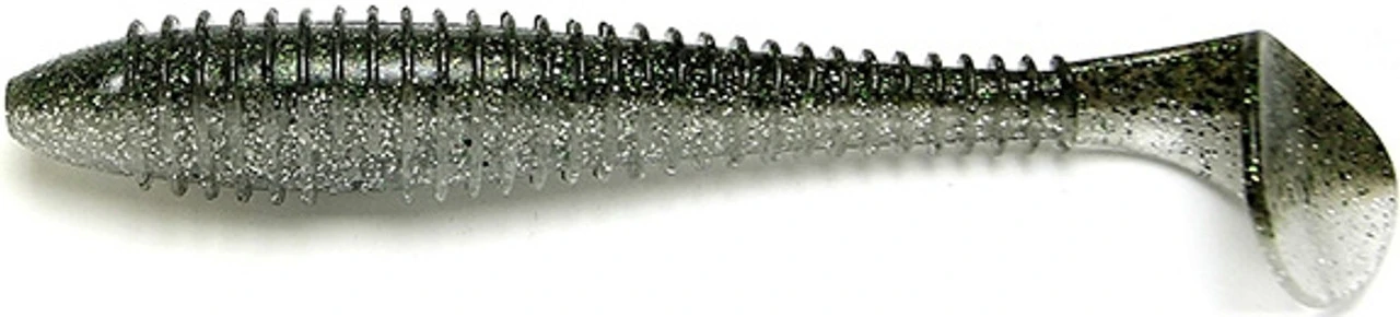 The Keitech Fat Swing Impact 6.8 is a soft plastic swimbait designed to replicate the profile and movement of small forage fish that bass prey upon. For several years the Keitech Swing Impact Swimbait was a secret of many west coast anglers. Much to their dismay, the word has slowly spread across the country and the results make this bait much more than idle dock talk. The most common issue with most small profile paddle-tail style swimbaits is the lack of tail kick produced by the bait when swam at slow speeds; in other words the bait required a fast retrieve that is not desirable when fishing swimbaits. The Swing Impact however, affords the angler the ability to retrieve it at the slowest speeds and still the wide tail-kick will be achieved. Even on the fall the tail has incredible action. The ribbed or zippered style of the Keitech Swing Impact and thin plastic connection to the tail are the two factors that give this bait its unparalleled swimming action.