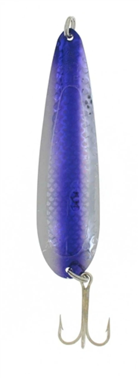 Silver Horde top cat spoons produce a powerful fish attracting action at a wide range of water flow speeds. Included in the design of these lures is a distinctive contour. This design was perfected after many years of testing and development. The shape allows these lures to move correctly at a slow speed and maintain the action as the water flow over the lure increases. With this important advance Silver Horde is able to offer anglers alure that will work well in lots of fishing environments. A proven technique that will improve the catch is combining the Top Cat with other tackle in order to increase the number of lures in use. These spoons are made from brass material and come equipped with strong stainless steel rings and super sharp 1/0 treble hooks. The Silver Horde Top Cat Spoon is 4 3/4″ in length.